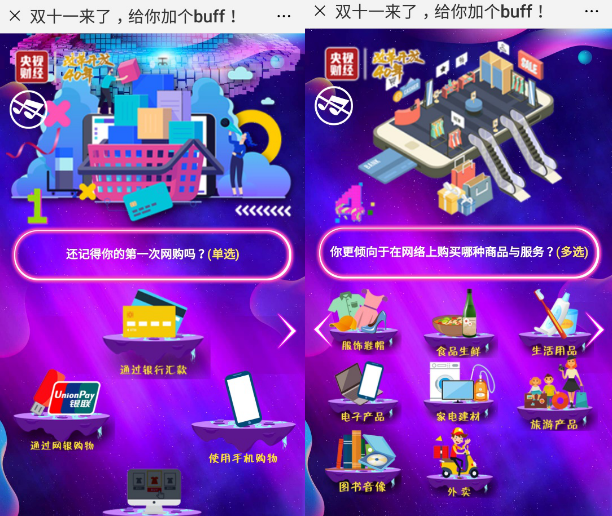 改革開放(fàn醫爸g)40年來(lái),人(rén)們從購(gòu)高工買基本生(shēng)活必需品,上(shàn街書g)升到追求幸福感。近十幾年來(lái),像旅行這(zhè)樣的虛拟公間物品,也(yě)走向“網購(gòu)”。雙十一(yī)期間(ji吧光ān),去哪兒(ér)網攜手央視(shì)财經,推出H5“雙十一(劇廠yī),給你加個(gè)buff”。引人(電醫rén)回首初次接觸網購(gòu)的歲月(yuè)(yuè)。