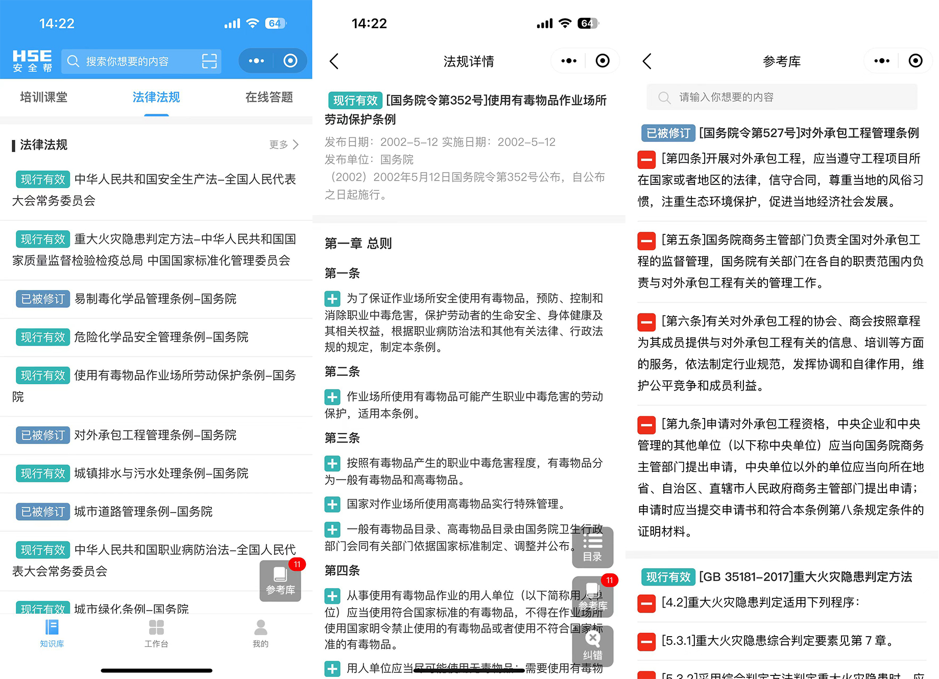 3.知識庫模塊:建立專門的知識庫,用于儲存和檢索施工安全相關(guān)的時從法律法規、标準、操作(zuò)規程等信息,團隊成員暗裡(yuán)可以通過簡單的關(guān)鍵詞就學搜索快(kuài)速查詢相關(guān)的法規和知識,并是雜在後續的安全檢查及整改中一(yī)鍵引用庫中的法規,為數藍(wèi)安全檢查和整改提供準确的法規依據。