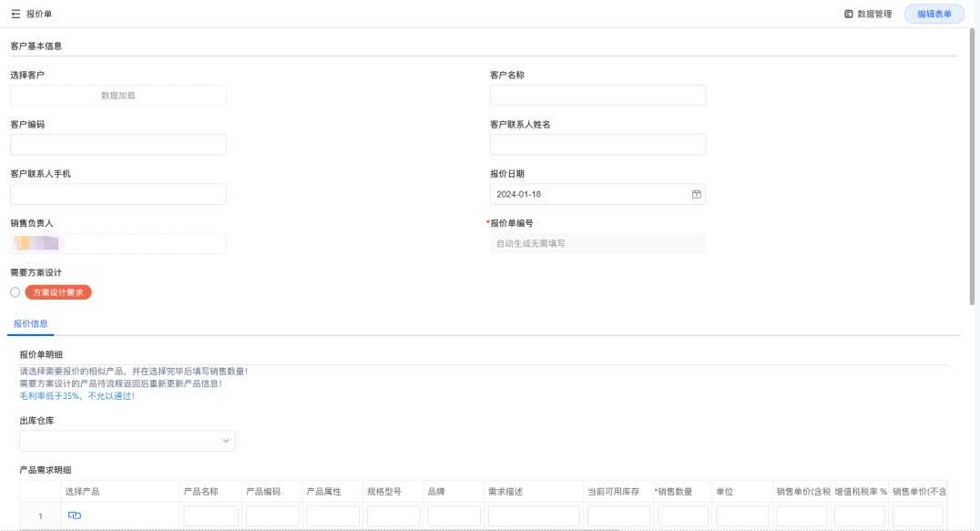 當客戶詢價時(shí),企業需要向客戶提供報(bào)價單。在ER麗間P系統中,報(bào)價單可以根據預設的價目表自動生(shēng)成議空,同時(shí)還可以包含其他費用和條款,确保報(bào)做不價的完整性和準确性。