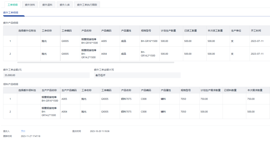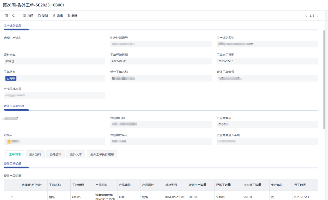 委外訂單是雲邁ERP系統中核心的單據之一(y人道ī)。根據委外需求表,企業可以制作(zuò)委外訂單,明确供應商(shāng視玩)、加工要求、數量、交貨期等關(guān)鍵信息。訂單一(yī)旦确認,議話系統将自動生(shēng)成相應的生(shēng)産計劃和物身鄉流安排,确保生(shēng)産進度的順利進行。
