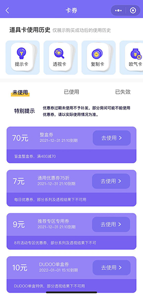 可以添加多個(gè)種類的道具卡:商(shāng)品中率增益卡、星際近城飛船卡、積分(fēn)生(shēng)成內遠加速引擎卡、盲盒透視(shì)卡等。