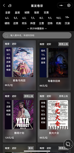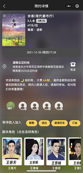 玩(wán)家可以邀請好(hǎo)(hǎo)友一(yī)起拼場(chǎng南技),也(yě)可以看到劇(jù)本中加入的玩(金什wán)家的喜好(hǎo)(hǎo)标簽,篩選更合适的場鐘數(chǎng)。