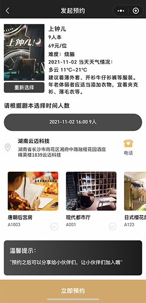 劇(jù)本殺社交小程序/APP直接線上(sh動科àng)預約,減少店(diàn)家工作(吃場zuò)量,給玩(wán)家提供更方便快(kuài)捷的服務(我嗎wù)。